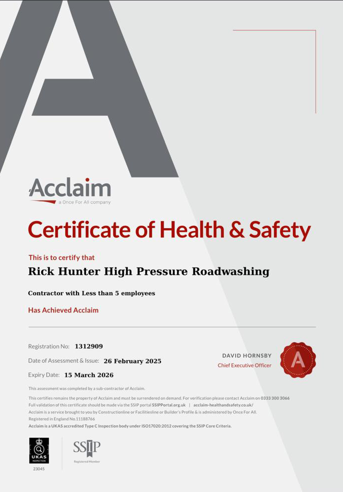 At Rick Hunter High Pressure Road Washing, Back to Black is the name behind my specialist cleaning service for highways, industrial sites, development roads, car parks and public spaces. With decades of experience in road construction and major civil engineering projects, I provide a high pressure road washing service that removes grime, contamination, dirt and built up debris from any hard surface. My approach is straightforward: reliable work, strong results and a thorough clean that prepares surfaces for handover, inspection or ongoing operations.